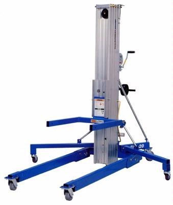 Designed specifically for the construction industry, these heavy-duty units can be operated by one person and can lift, lower and move loads up to 650 lbs (295 kg) to heights of up to 24 ft (7.32 m). Glide rails allow one person to easily load or unload the unit, as well as lift it in or out of a pickup truck.