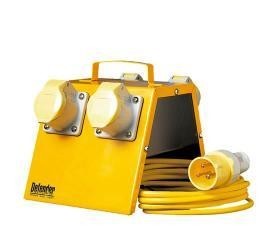 this light comes with 5mtr of cable 16amp 110v and also positioned on the frame are 2 x take off sockets so making linking of lights together easier